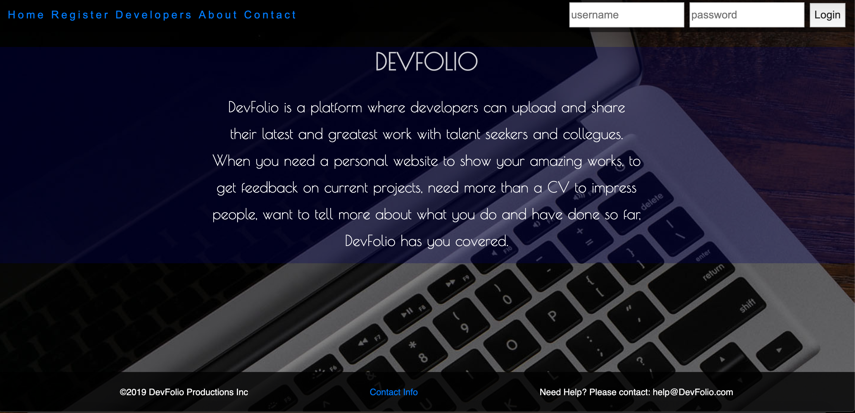 Dev-Folio was featured as Project II at General Assembly. For this project, Bill sought out to build a platform where prospective developers could create an online portfolio and showcase their most recent projects. This platform would serve as a tool for promoting their developer work as well as a source for recruiters to find local talent!